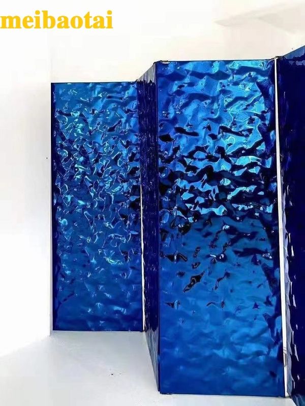 The surface of the ordinary metal corrugated sheet is flat, and the refracted image is also uniform and uniform. But if the metal plate is beaten with a hammer, the surface will become uneven, and the refracted picture can present a visual three-dimensional effect. Through different percussion methods, the metal water ripple sheet can be divided into three categories: large water ripples, small water ripples, and water scale patterns. Water ripple surface treatment methods include bright, brushed, gold, rose gold, black titanium, champagne gold, and sapphire blue.